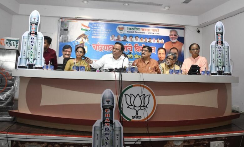मुंबई, २२ ऑगस्ट   : भारतीय जनता पार्टीचे माजी आमदार अतुल शाह यांनी चांद्रयान-३ मोहिमेवर बनविलेल्या मराठी व हिंदी गीतांचे प्रकाशन मुंबई भारतीय जनता पार्टीचे अध्यक्ष आ. आशीष शेलार यांच्या हस्ते मंगळवारी करण्यात आले. भारतीय जनता पार्टी प्रदेश कार्यालयात झालेल्या या कार्यक्रमाला भाजपा प्रदेश सरचिटणीस माधवी नाईक,प्रदेश माध्यम विभाग प्रमुख नवनाथ बन,प्रदेश प्रवक्त्या राणी द्विवेदी आदी उपस्थित होते.